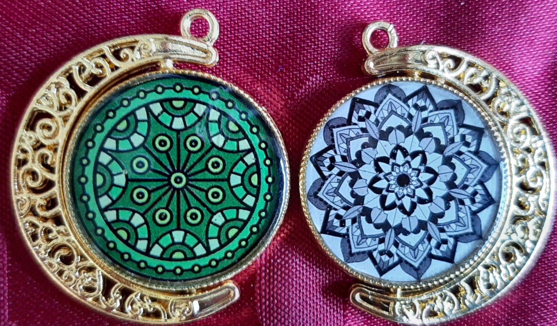 Dubbelzijdige Hanger "Mandala Zilver-Groen"